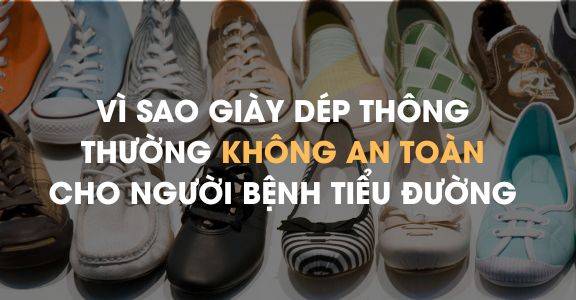 Giày dép thông thường không an toàn cho người tiểu đường vì chúng có thể không bảo vệ đủ, dễ gây chấn thương và biến chứng như vết thương, nhiễm trùng do bệnh thần kinh ngoại biên, làm bàn chân kém nhạy cảm với các tổn thương nhỏ, dẫn đến chậm lành và biến chứng nặng hơn. Giày dép không phù hợp còn gây áp lực quá mức, làm ảnh hưởng tuần hoàn máu và hình thành các biến dạng bàn chân như ngón chân búa.